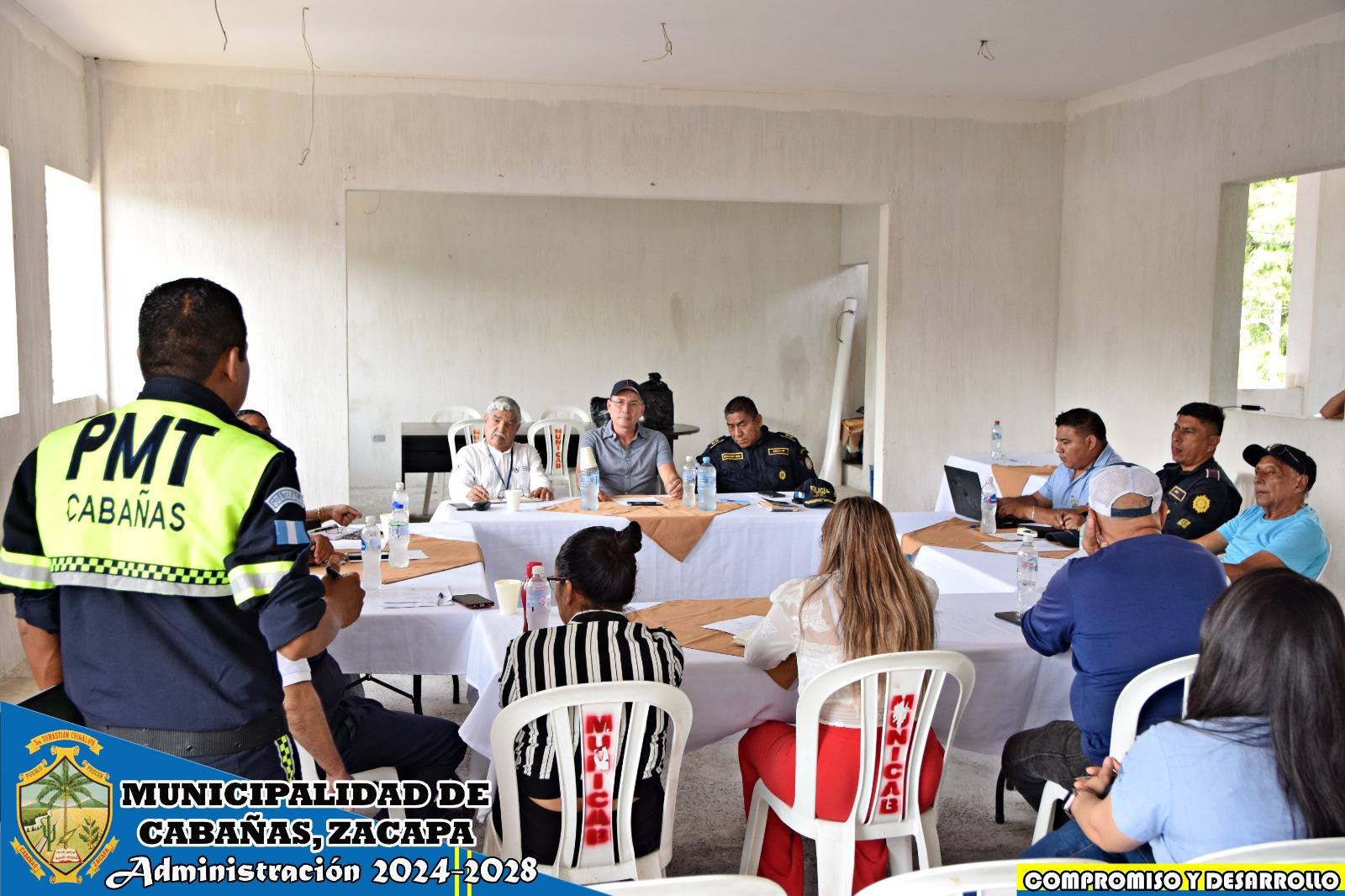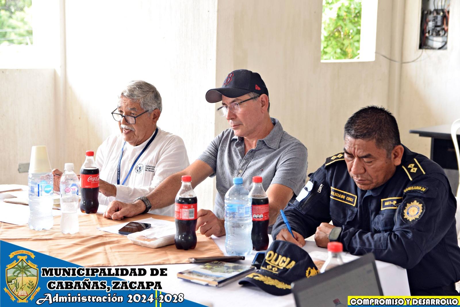 La Comisión de Seguridad Ciudadana de nuestro municipio coordinó una mesa de diálogo en la que participaron las siguientes instituciones: Municipalidad de Cabañas Administración 2024-2028, Agencia Fiscal Municipal del MP Cabañas, Supervisión Educativa Sector 19-07-12, Centro de Salud, Agentes de Seguridad Vial PMT, Juzgado de Paz, Alcalde Comunitario de la Cabecera Municipal, Juzgado de Asuntos Municipales, Policía Nacional Civil, el Gobernador Departamental Francisco Arturo Echeverría Jordan y nuestro Alcalde Municipal José Humberto Sandoval Castañeda;