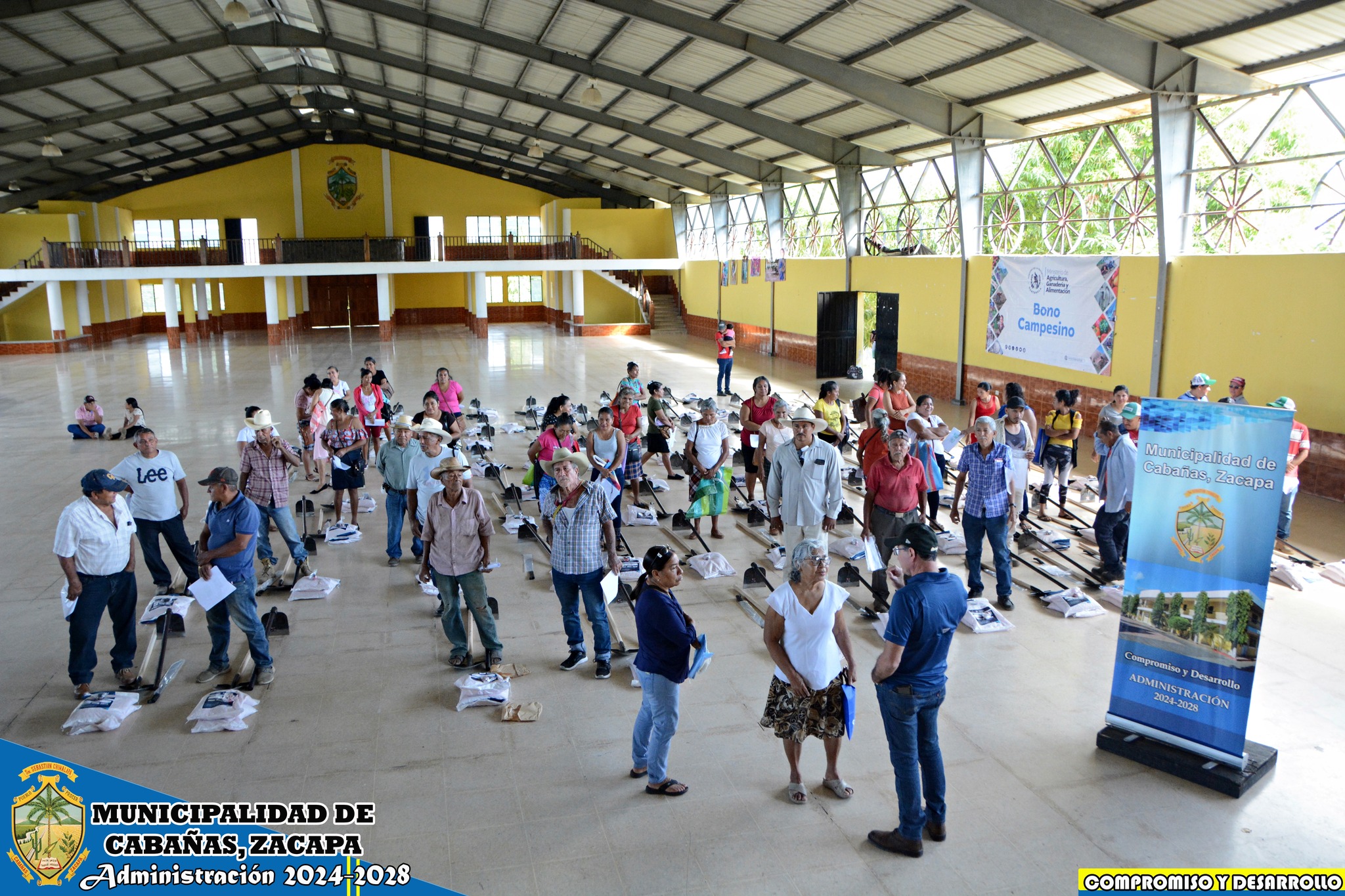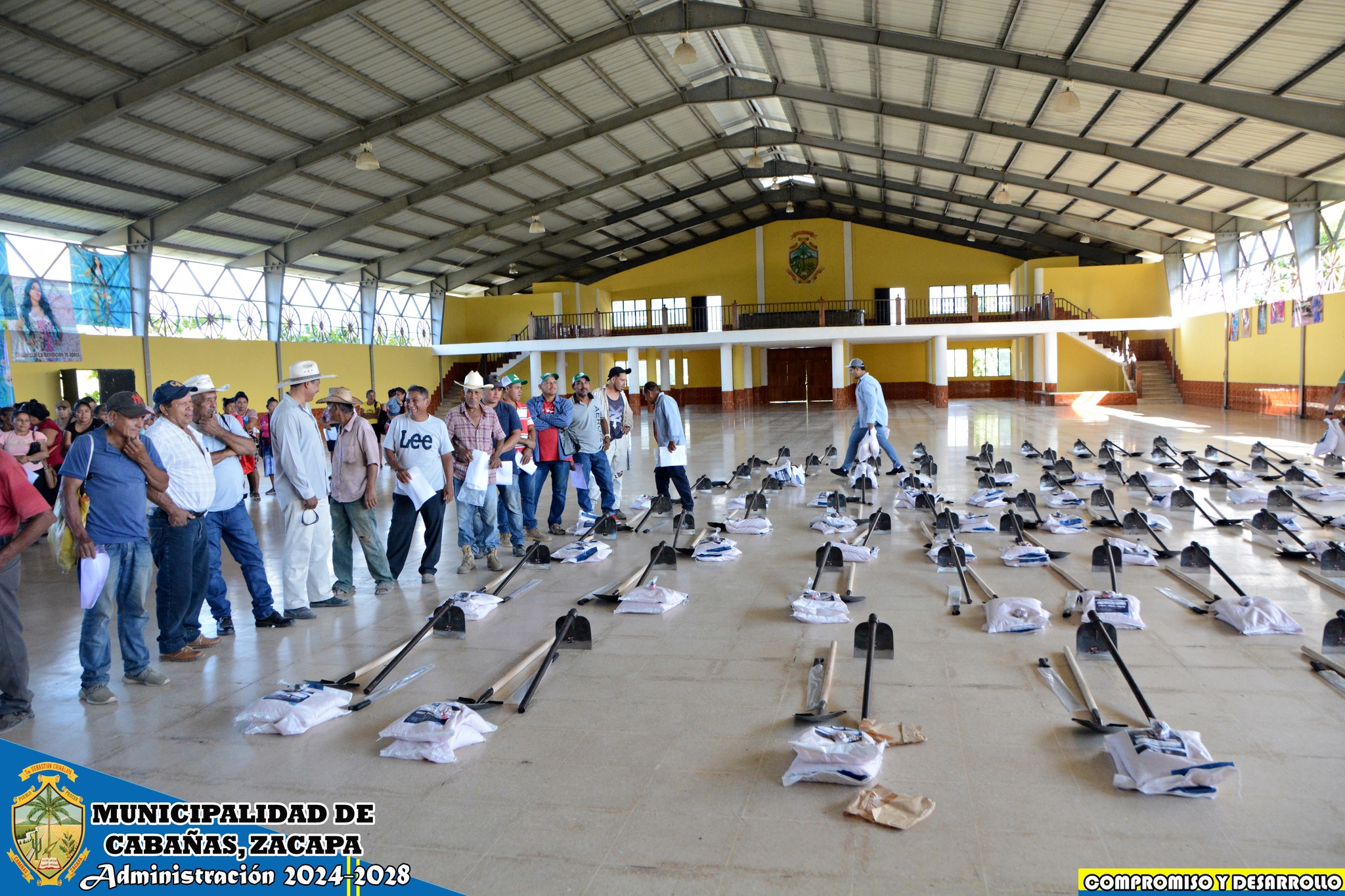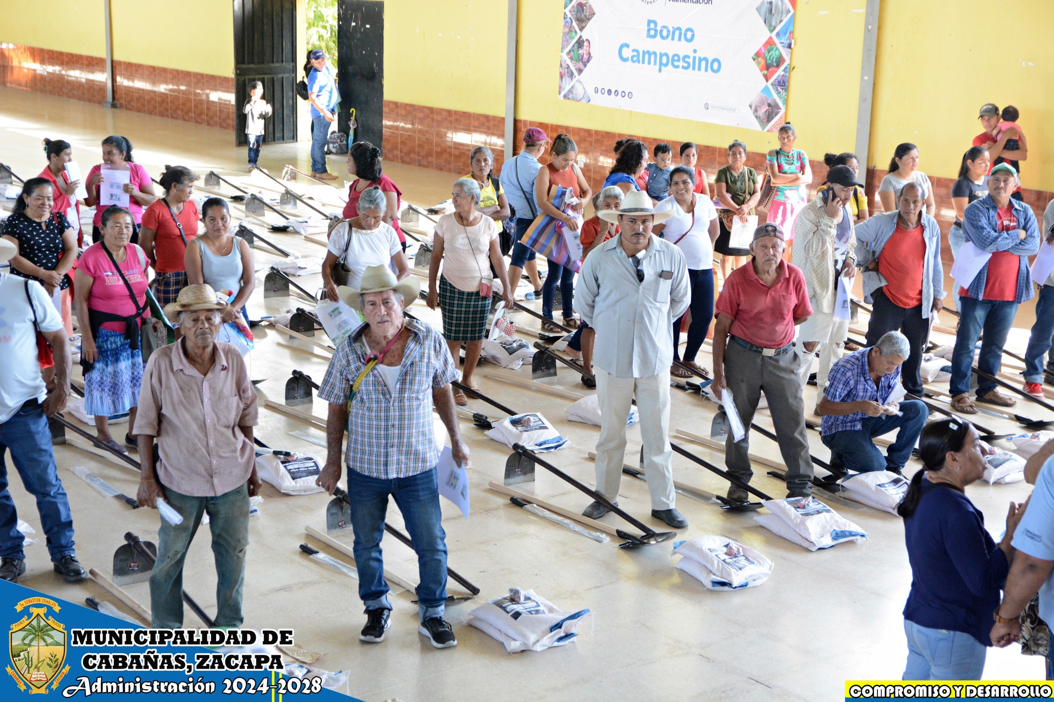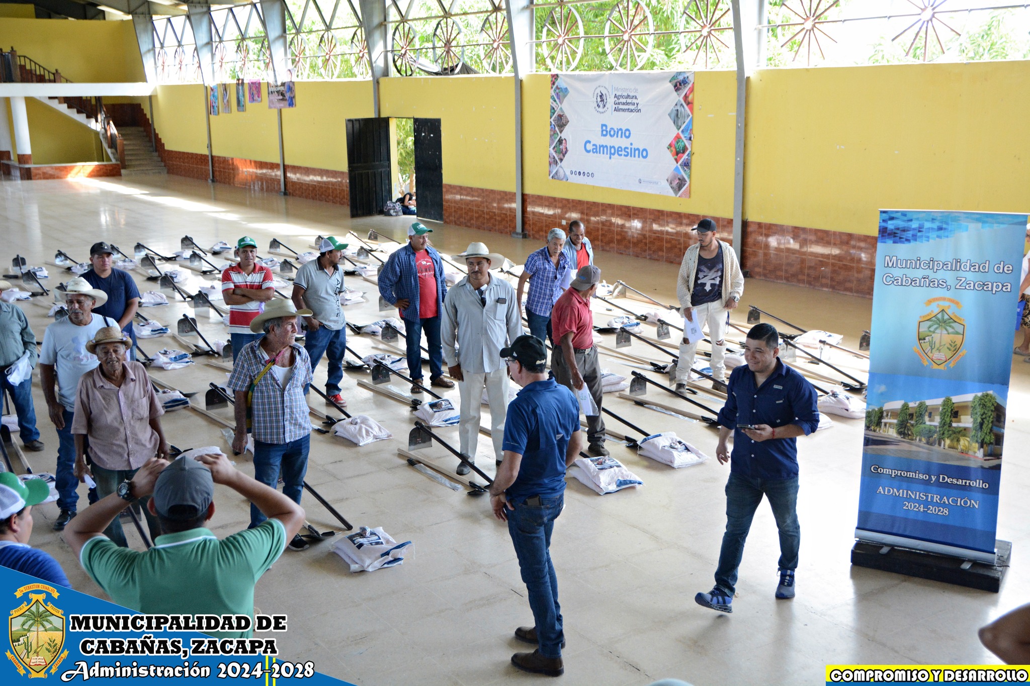 Nuestro Alcalde Municipal José Humberto Sandoval Castañeda, coordinó junto a su equipo de trabajo Administración 2024-2028 la entrega de herramientas y semillas mejoradas para nuestros agricultores de las comunidades El Arenal, San Vicente, El Rosario y Cabañas cabecera, con el Ministerio de Agricultura, Ganadería y Alimentación -MAGA- denominado «Bono Campesino», siendo 100 cabañecos los beneficiarios.