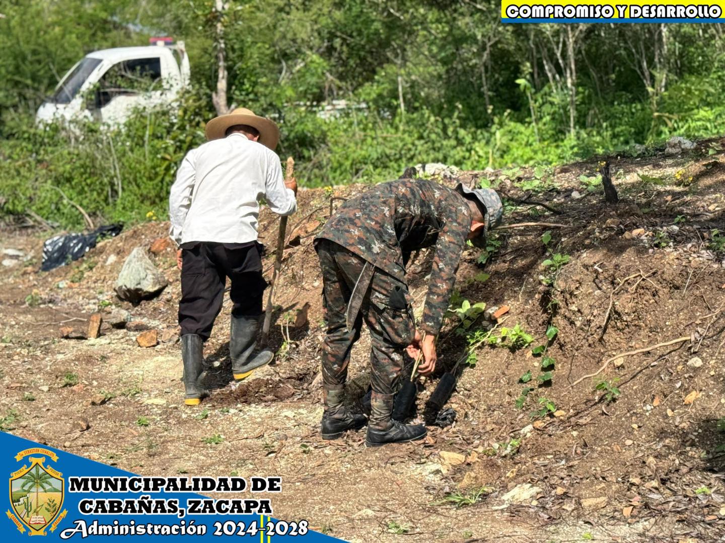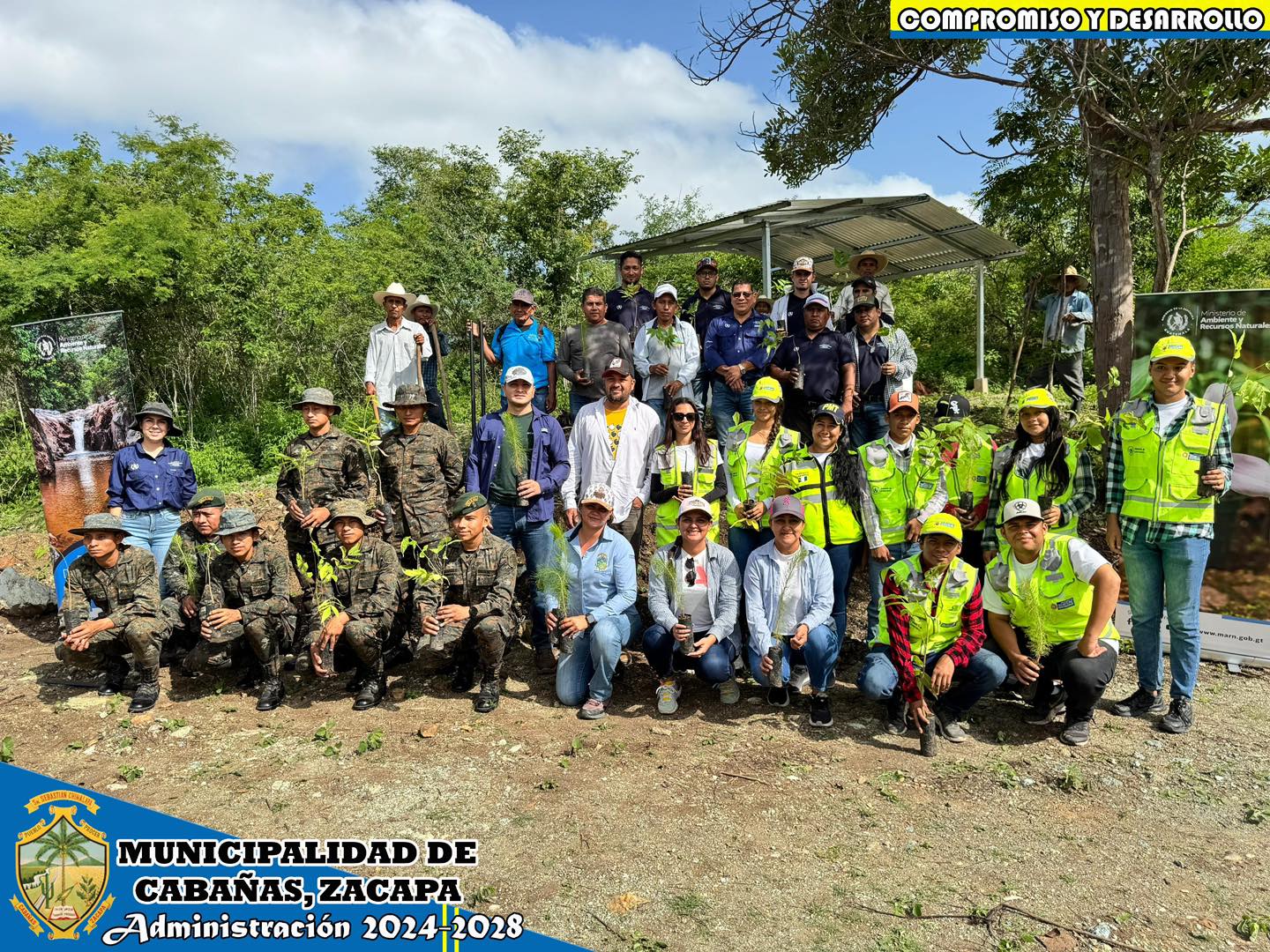nuestro personal municipal de UMGAR, la delegación del MARN Zacapa, la Segunda Brigada de Infantería Zacapa, Mancomunidad Motagua y el valioso apoyo de personas de la comunidad junto a servidores cívicos, sembraron 510 pinos (pinus oocarpa) y