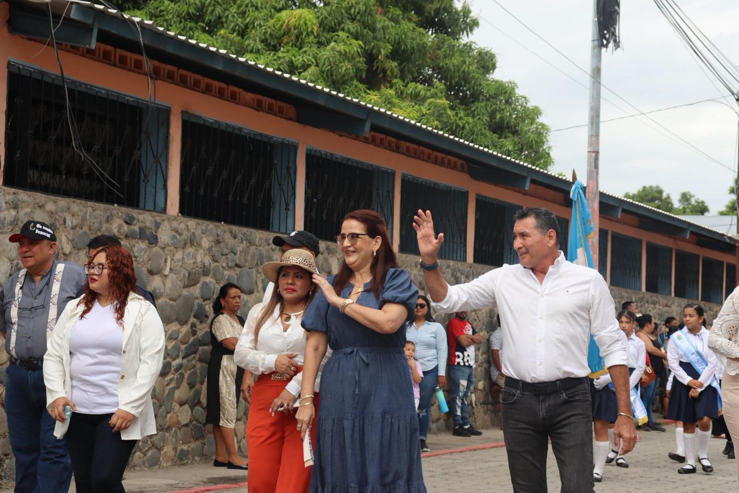 Nuestro Alcalde Municipal junto a esposa, Concejo y autoridades de instituciones gubernamentales, encabezaron con alegría y compromiso este desfile demostrando que se está presente en cada paso firme que se da para y con nuestros cabañecos.